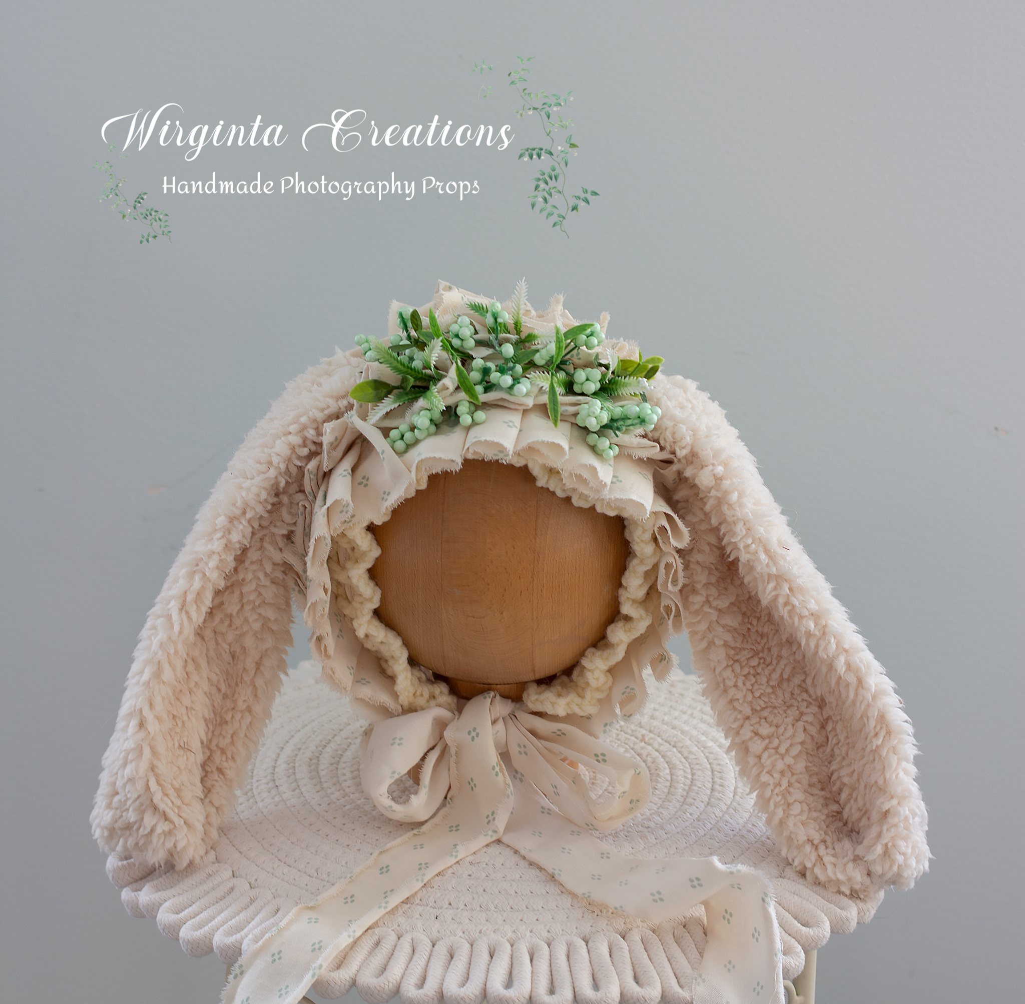 This bunny bonnet is ideal for photographers building their sitter and Easter prop collections, as well as for parents looking for a one-of-a-kind piece for milestone or seasonal photos.